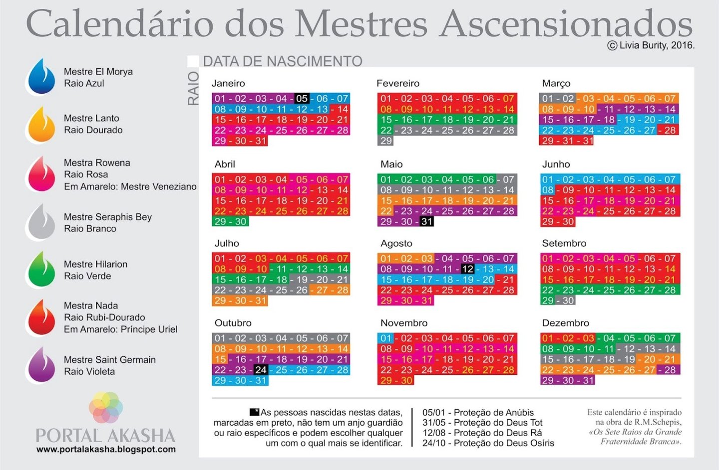 CALENDÁRIOS DE RAIOS DOS MESTRES ASCENSIONADOS